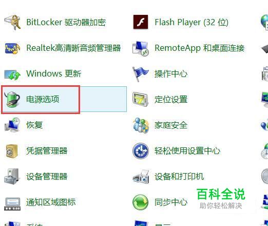 接着打开电源选项,如下图红框所示