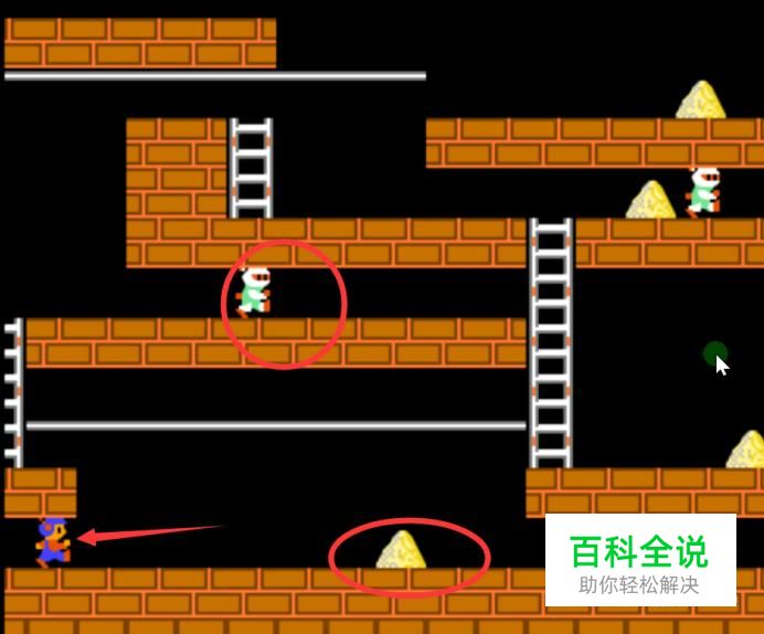 吃完所有的金子之后,顶部就会出现一架新的梯子,之后我们就要想办法爬上去