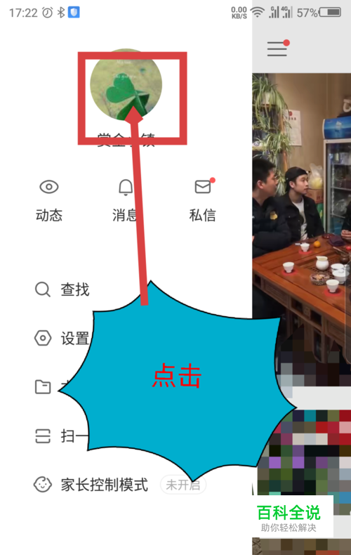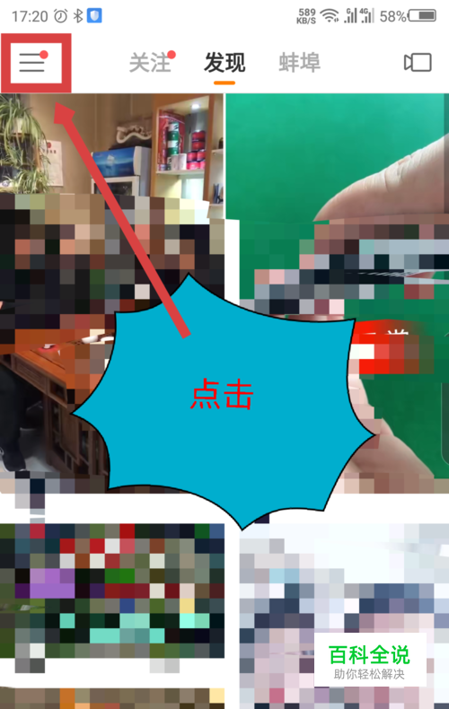 打开快手后,点击打开的软件左上角的三条横线图标。如图所示