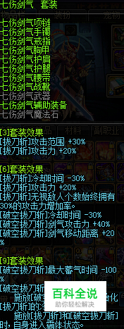 首推的是七伤这一异界套,大大加强了拔刀,刷图神器