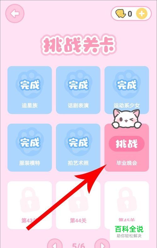 点击打开“挑战 毕业晚会”关卡,接着查看关卡说明,从中可以得到一条重要的信息:要认真打扮!考虑到场合是晚会,所以要做认真打扮,但是又不能过,因为她还是一名学生。