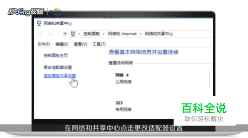 当网络连接失败时,在网络和共享中心点击更改适配器设置。