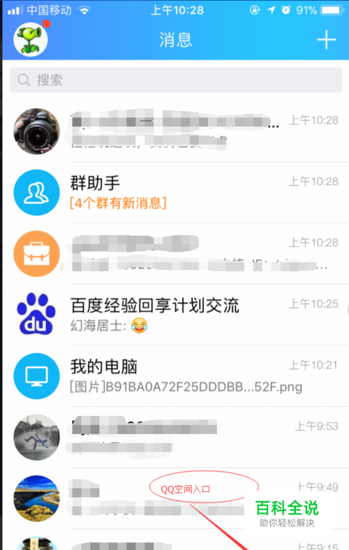 第一步:打开手机QQ,然后找到QQ空间,这里才能找到自己的相册。