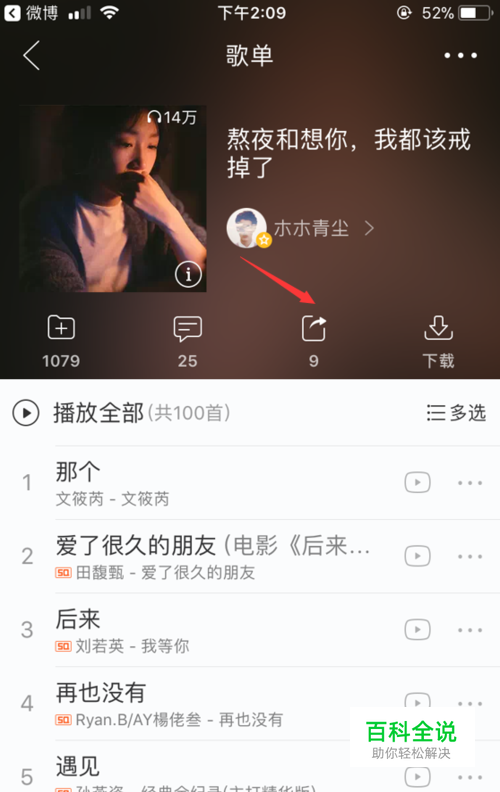 首先,我们点击打开网易云音乐的一个歌单,然后点击如图所示的分享按钮