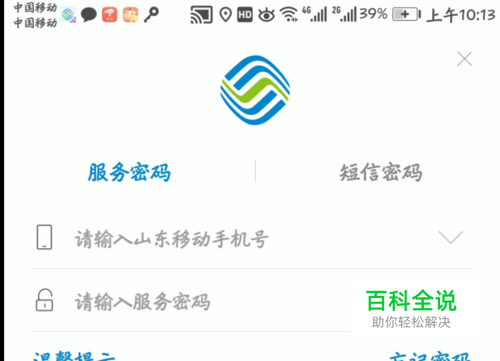 打开登录页面后,输入自己的手机号和服务密码或者短信密码登录。
