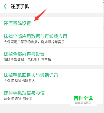 打开以后,第一个选项就是【还原系统设置】也就是我们常说的恢复出厂设置,是一个道理,我们点击打开。
