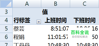这样,就生成了一个包含人名和上下班时间的统计表,一目了然。
