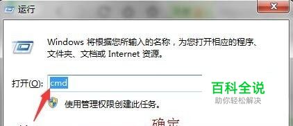 按win+R组合键,弹出【运行】对话框,在【打开】文本框中输入“cmd”命令,单击【确定】按钮。