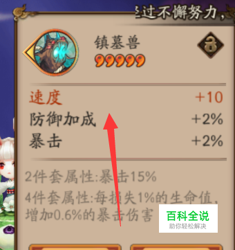 第三步就是根据御魂的强化属性决定你是否留下这个御魂给该式神使用。前面说了,一种御魂可以从0 lv 提升至15 lv,每3 lv会强化副属性中的“随机”一种属性,那么当你把一个5、6星的御魂强化到15 lv时,判断御魂好坏的必要条件就是,“随机”全部都强化到你想要的那一个属性上了。很简单的例子,【山兔】需要【速度】属性,6个位置,6个御魂里都有【速度】副属性,然后你都强化到+15 lv ,且所有的副属性强化提升,都强化至副属性的【速度】上,那这个御魂,就是极品御魂了。(需要注意的是,2号位是存在主属性为速度的御魂的,而这个位置的6星御魂是主速度属性里是最好)。