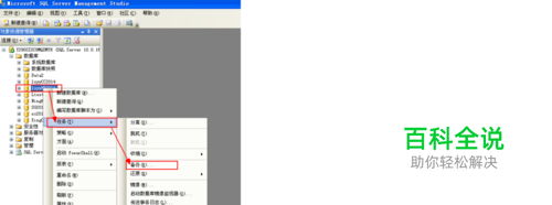 先打开数据库列表鼠标选中要备份的库,然后点击鼠标右键打开选择任务项,最后选择任务列表中的备份