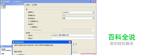 点击打开弹出备份数据库界面,然后在此界面上 点击添加按钮,弹出选择备份目标的界面
