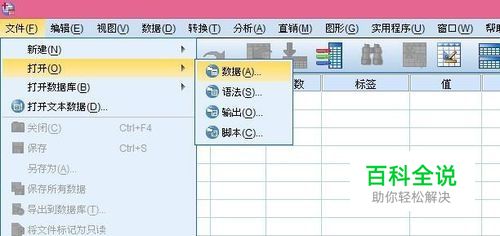 在如图所示的案例中,我们需要对这几个变量做相关性分析。我们首先从Excel里面导入测试数据,依次点击“文件-打开-数据”,选择我们需要的测试数据所在的Excel表格。