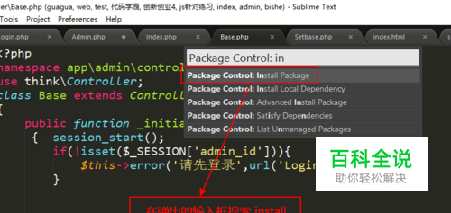 点击package control ,弹出如下框搜索install 找到install package点击进入