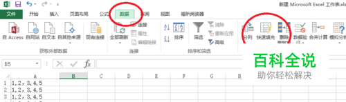 在Excel上面的选项卡中选择“数据”,在下面的选项中选择“分列”。