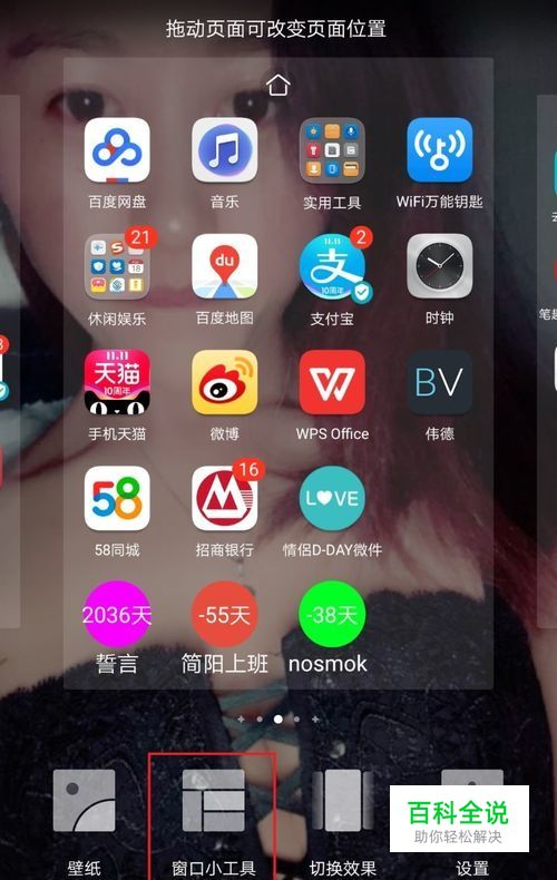 长按手机空白桌面,会显现出窗口小工具,点击