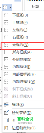 然后在开始菜单栏中找到“边框”菜单,打开“边框”菜单栏下拉键,选择“无框线”,页眉或页脚处的线条就消失啦!