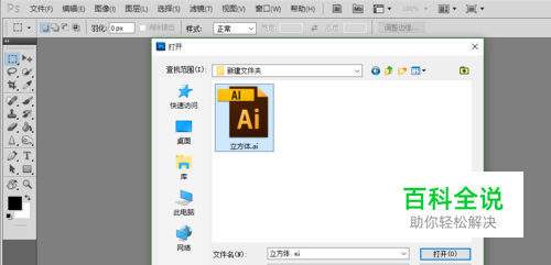 打开PS软件,执行步骤文件-打开,请在对应的文件夹找到需要打开的AI文件,点击打开该文件。