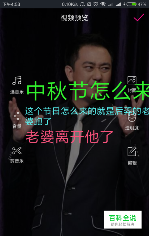 之后你可以点击封面,把背景图片修改成你想要的,还能编辑背景图片的透明度。还能添加bgm,增加你的视频效果,作为一个手机软件简直不要太强大。
