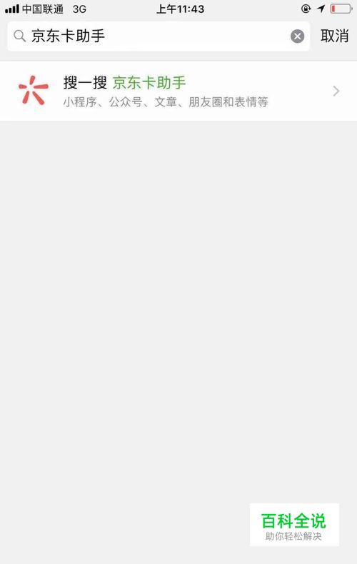 首先我们先打开手机微信客户端搜索“京东卡助手”公众号