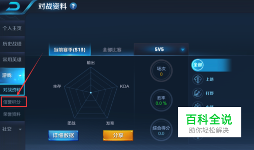 在【游戏】功能下方会弹出对战资料、信誉积分以及荣誉资料三个功能,接着点击【信誉积分】功能。