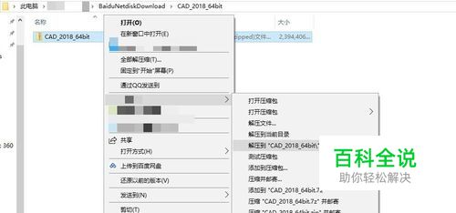 首先,找到软件安装包,鼠标右击软件安装包,选择解压到CAD2018