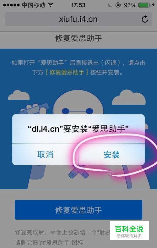 第一个软件叫“爱思助手”打开Safari,输入网址xiufu.i4.cn,点击按钮“修复爱思助手”,按照步骤下载软件就可以了。爱思助手下载下来的软件可以直接打开,不想苹果助手和PP助手需要连接电脑激活,快捷方便。但缺点是软件较少,有时候比较“偏僻”的软件并不能搜到
