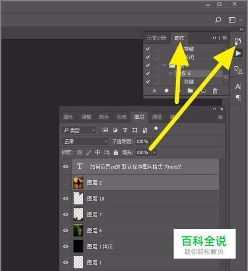 我们的图片处理完成之后,在ps的界面右侧找到历史记录,点击打开,在历史记录中找到动作。