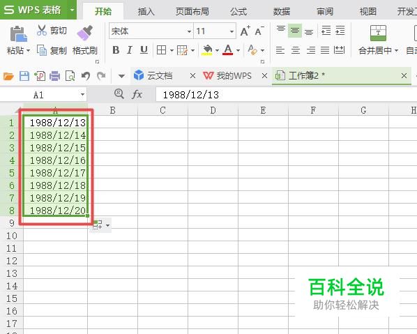 然后我们在表格中输入一些日期,之后选中这些单元格;