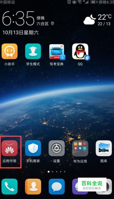 首先,我们打开我们的手机,然后我们点击应用市场;