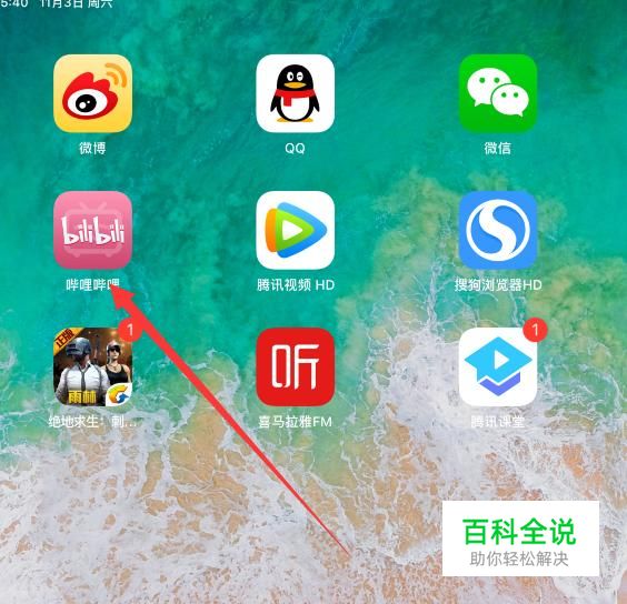 打开iPad,找到哔哩哔哩,点击并进入,如图所示。