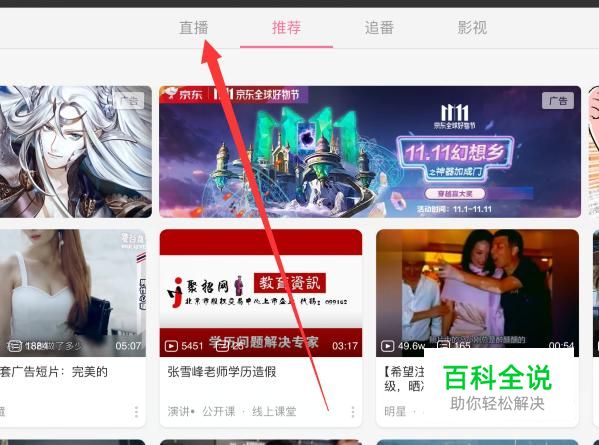进入之后,点击“直播”,切换到直播页面,如图所示。