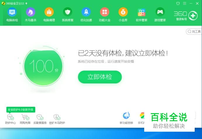 首先打开360安全卫士立即体检界面,如图