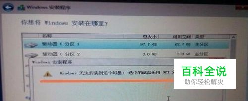 安装系统报错:windows无法安装到这个磁盘 选中的磁盘采用gpt分区形式