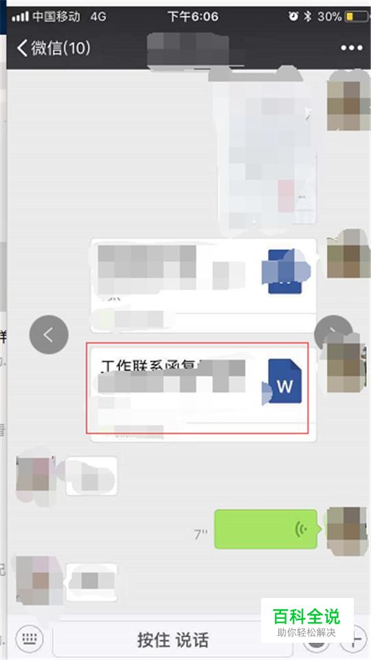 打开手机上的微信,找到需要发送到电脑端的文件,见下图
