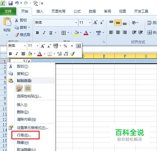 首先,我们打开我们电脑上面的一个excel文档,然后我们选中第一行,之后右击选择行高;