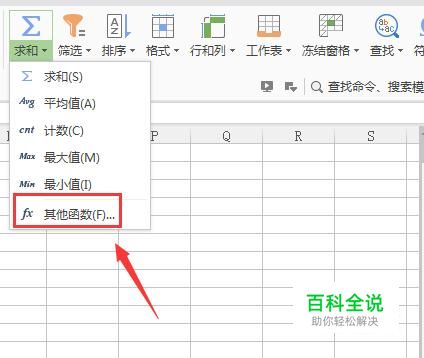 点击求和选项在其下拉菜单那里找到其他函数选项,如图所示: