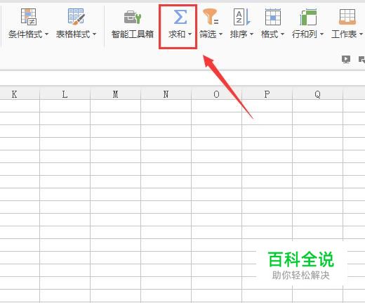 打开WPS表格这款软件,然后选择单元格并在单元格内输入数值,再在菜单那里找到求和选项,如图所示: