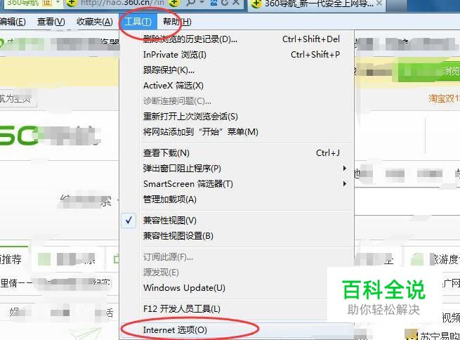 Internet选项 打开IE浏览器,然后点击【工具】---【Internet选项】,如下图所示: