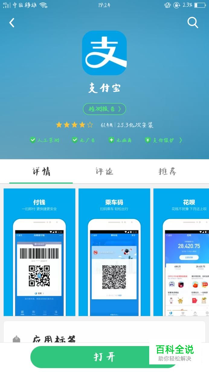 首先在软件商店里搜索“支付宝”软件,下载并安装。