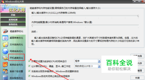 在“开机速度优化”左侧找到需要进行优化的项目。