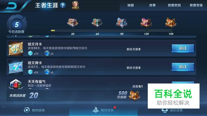 然后,我们每天登陆王者荣耀和完成一些小任务就会获得一些铭文碎片。