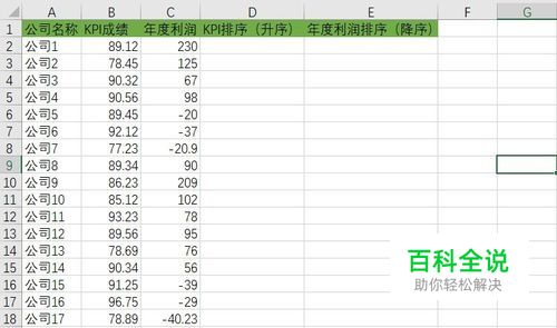 首先如图所示,要将表中的公司KPI和年度利润进行排名次