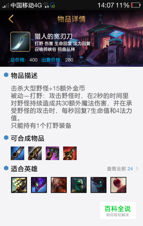 第一次回家时将打野刀升级为蓝色的可以惩戒减速敌方英雄的打野装备,尽快攒钱把这件打野装备附魔为吞噬者。