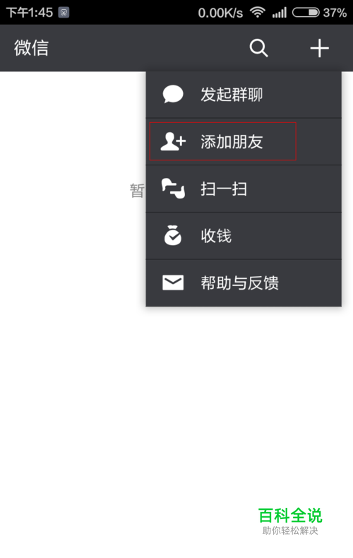 点击右上角+号,再点击添加好友