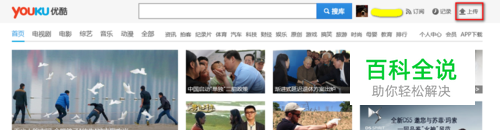 登录到优酷,点击网页右上角的“上传”