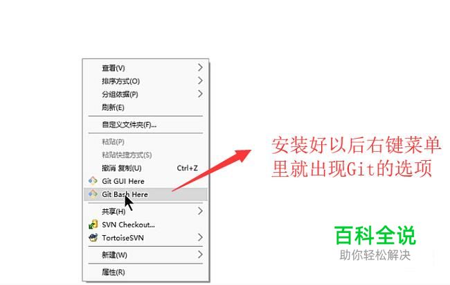 下载完安装包并且安装以后,我们就可以在鼠标右键菜单中看到Git的选择项,这代表Git安装成功了,如下图所示