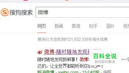 首先在我们的搜狗浏览器中输入微博并点击回车键,如下图所示。