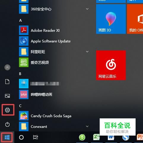 首先,我们点击电脑桌面左下角的微软按钮,弹出的界面,我们点击设置;
