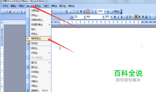 单击菜单栏“插入”——“特殊符号”命令。