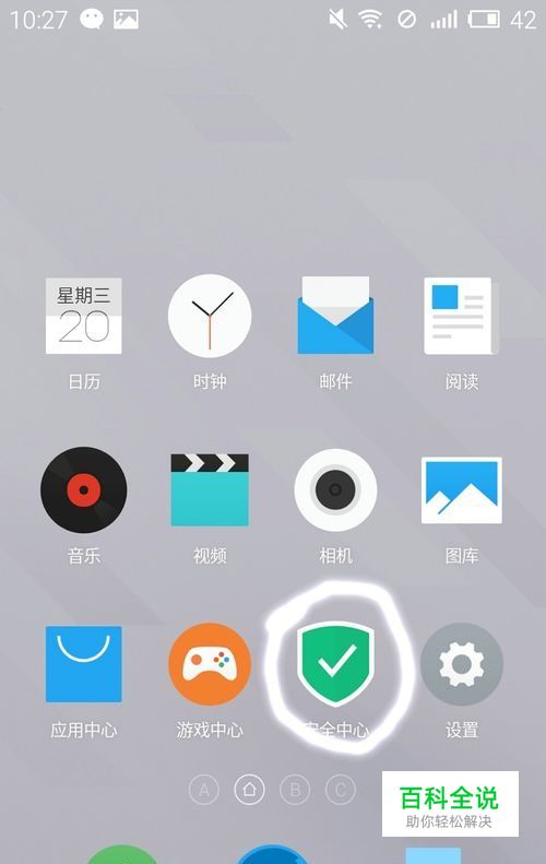 我们应该先修改权限。首先找到手机上的安全中心,点进去。